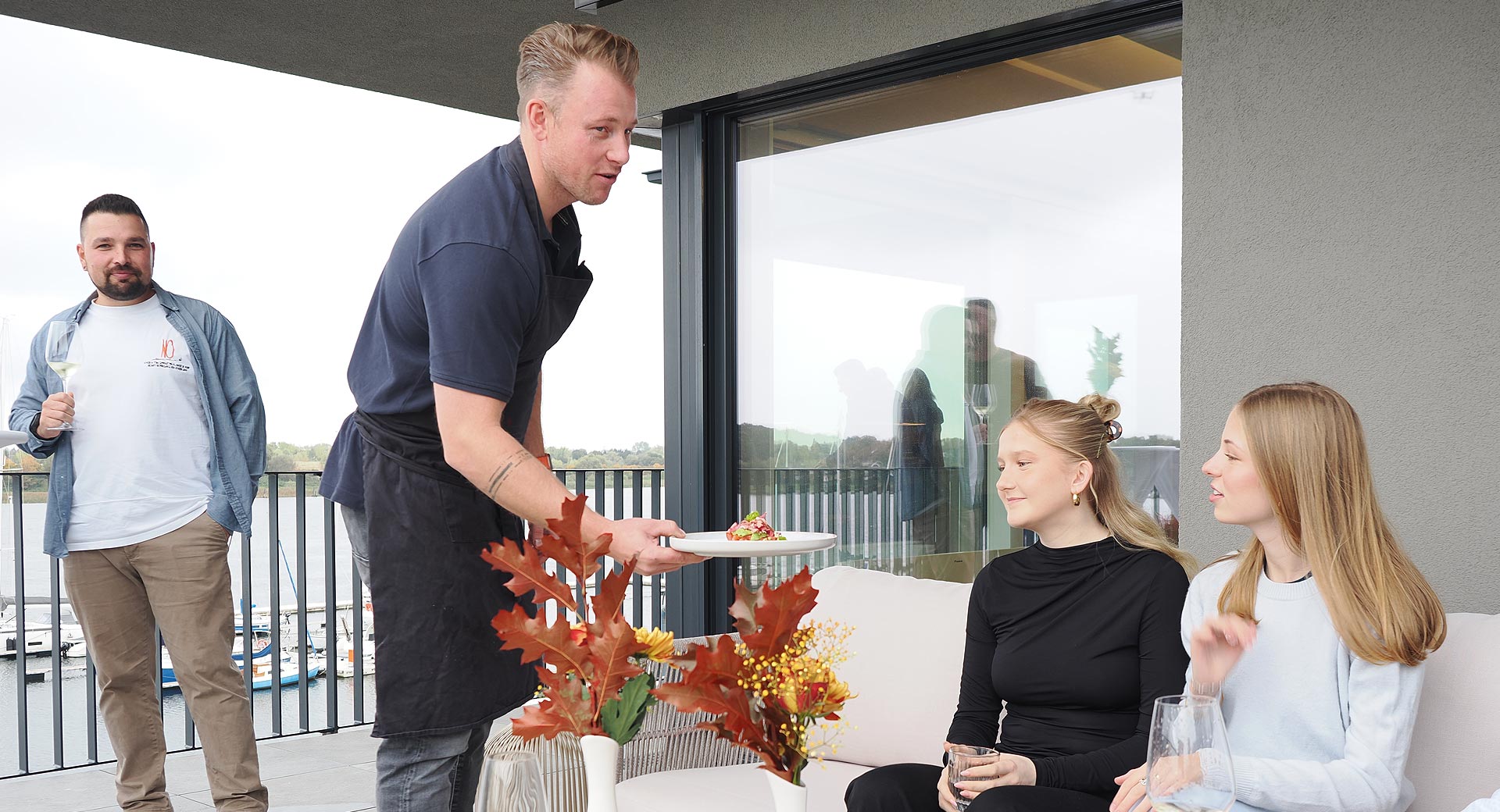 ... bietet im Verlauf eines Events immer wieder schöne, inspirierende Ausblicke auf das maritime Umfeld, die Warnow und die Silhouette der Stadt. Sie ist sowohl zum Wasser als auch zur City hin ausgerichtet. Auf der Terrassenfläche kann bei entsprechendem Sommerwetter natürlich auch gegrillt werden. Hier lassen sich ebenso wie in den Innenräumen perfekte Sundowner-Momente genießen. Die ersten Veranstaltungen in der neuen Ocean´s Ende Business Lounge haben bereits erfolgreich stattgefunden, auch das Magazin Meerraum durfte hier zu Gast sein.